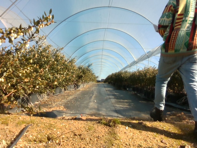This was really valuable time as we got to pressure test the model and see how it performed in reality. To do this, we simply used a laptop with a camera attached and walked it through the blueberry rows. The performance wasn't as good as it had been on the original dataset, but this is something that will improve with more data.